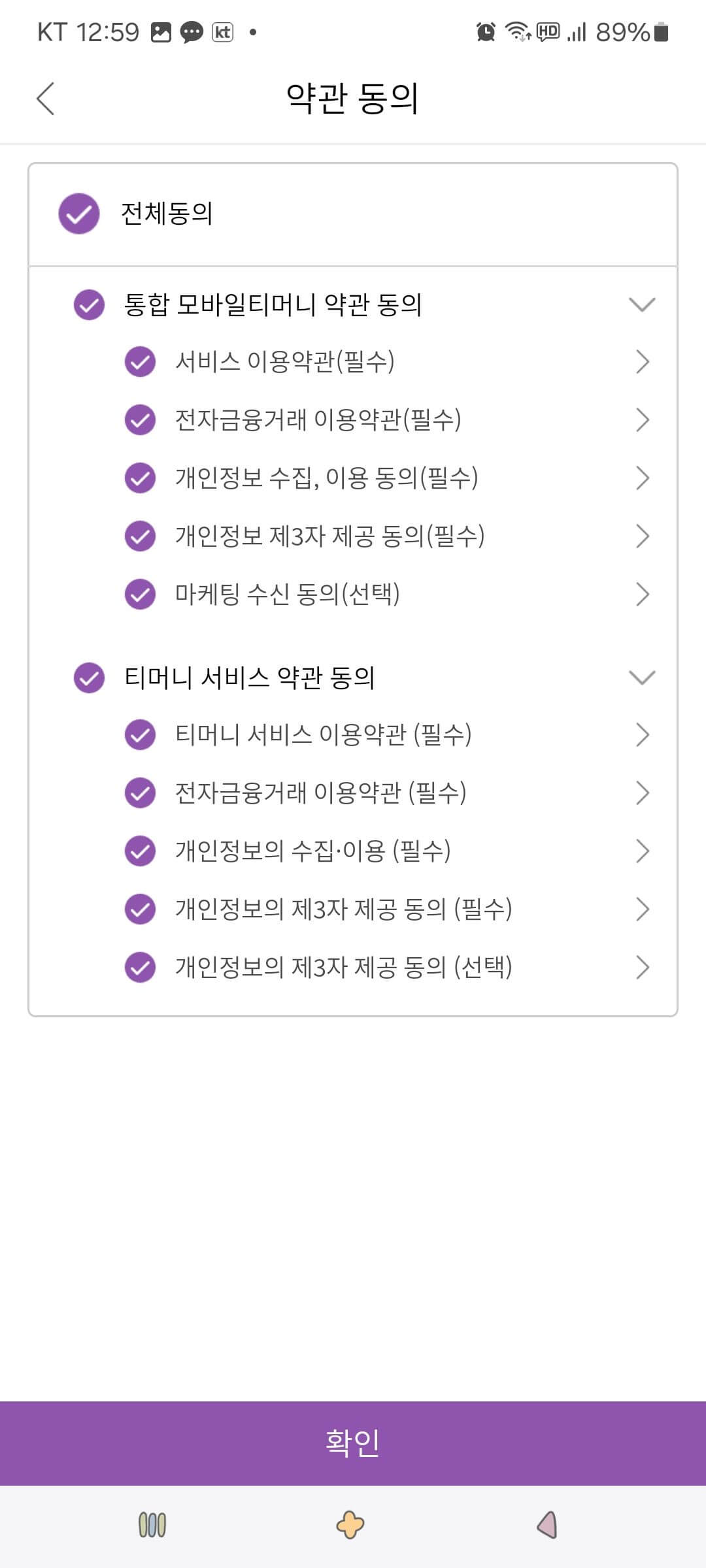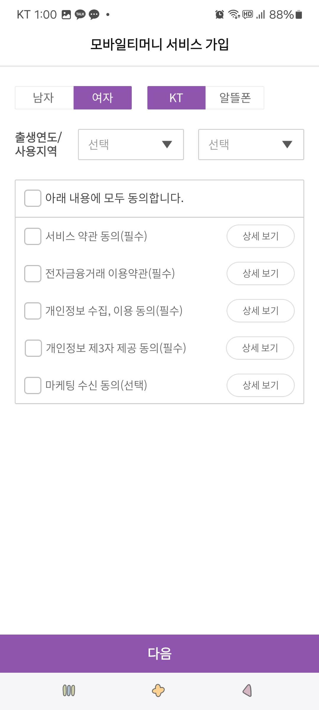 8. 모바일 티머니 서비스 가입 화면에서 해당사항을 입력한 후 동의합니다.