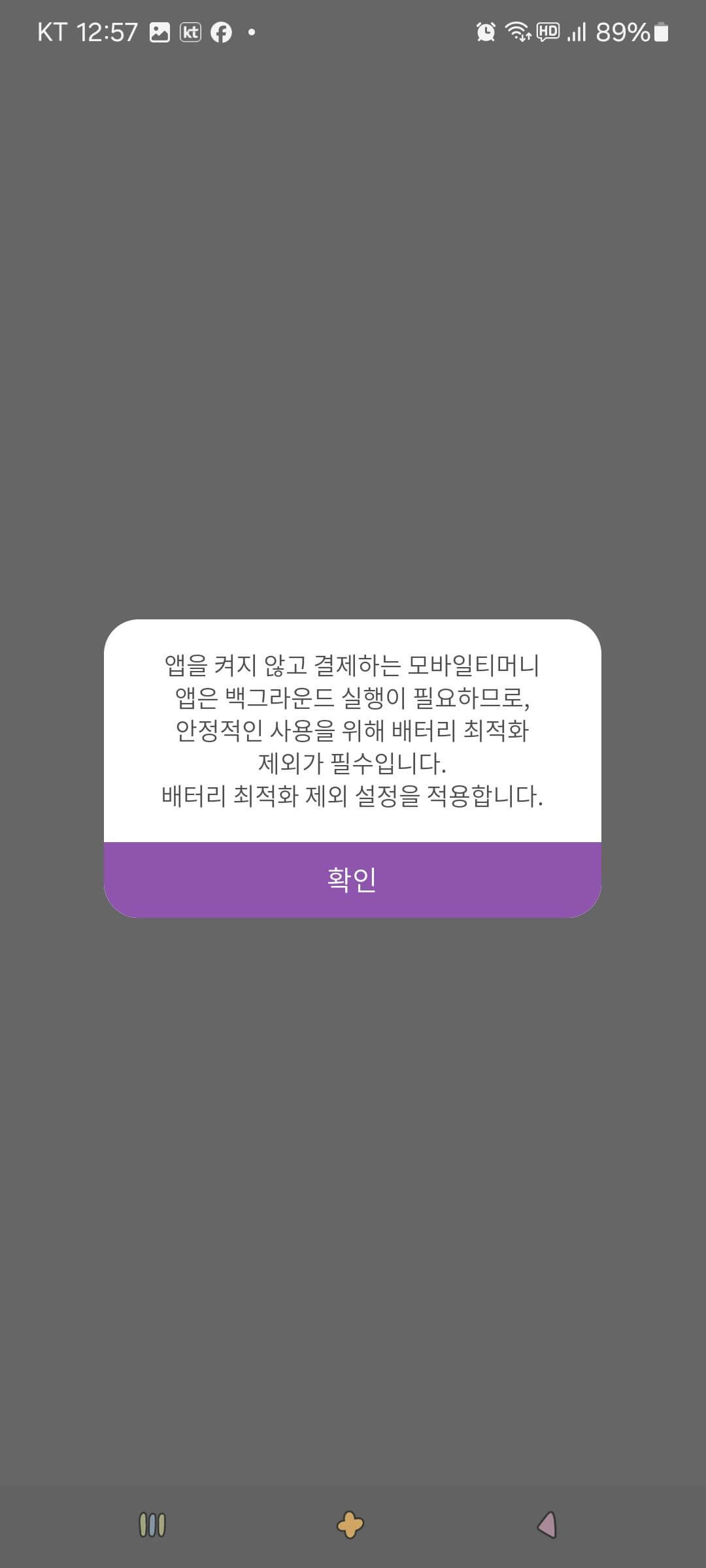 4. 배터리 최적화에 대한 메시지를 확인한 후 [확인] 버튼을 누릅니다.