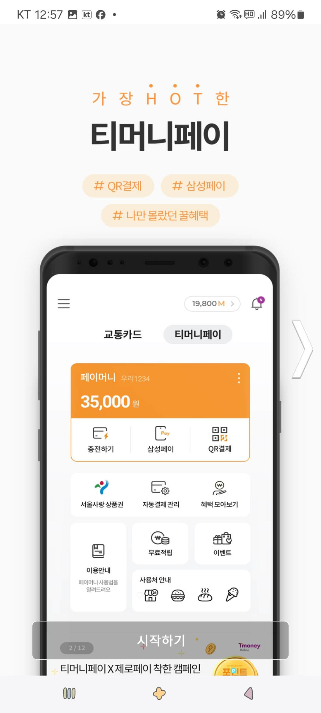 5. 모바일 티머니 화면에서 [시작하기] 버튼을 누릅니다.