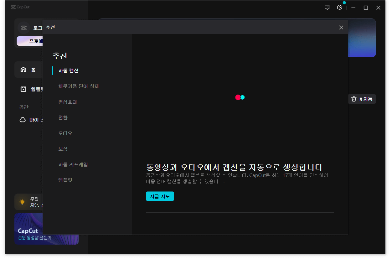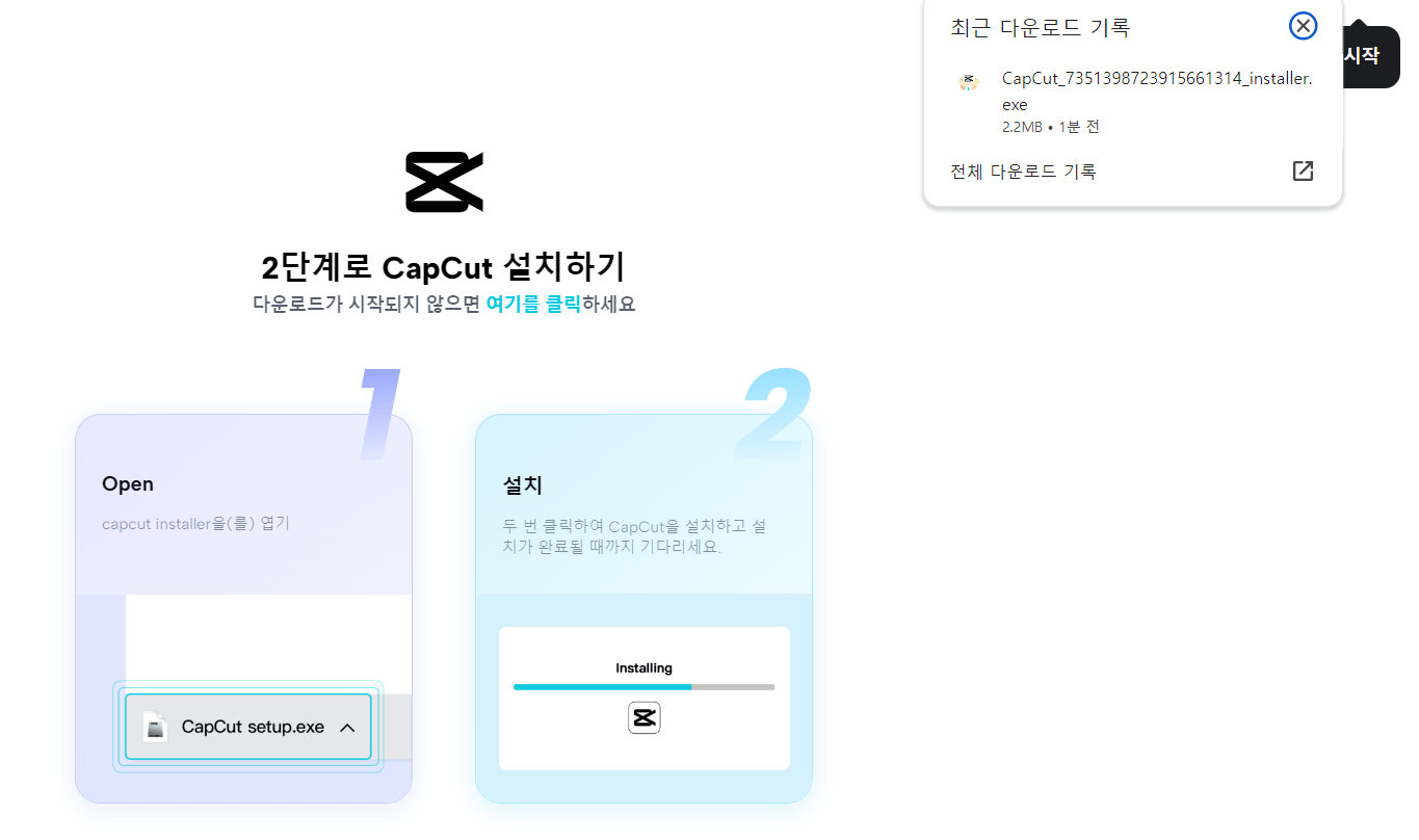 ※ 캡컷 한국어 설치가 바로 안될 경우 맨 아래에 있는 캡컷 한국어 설치방법을 확인하시기 바랍니다.
