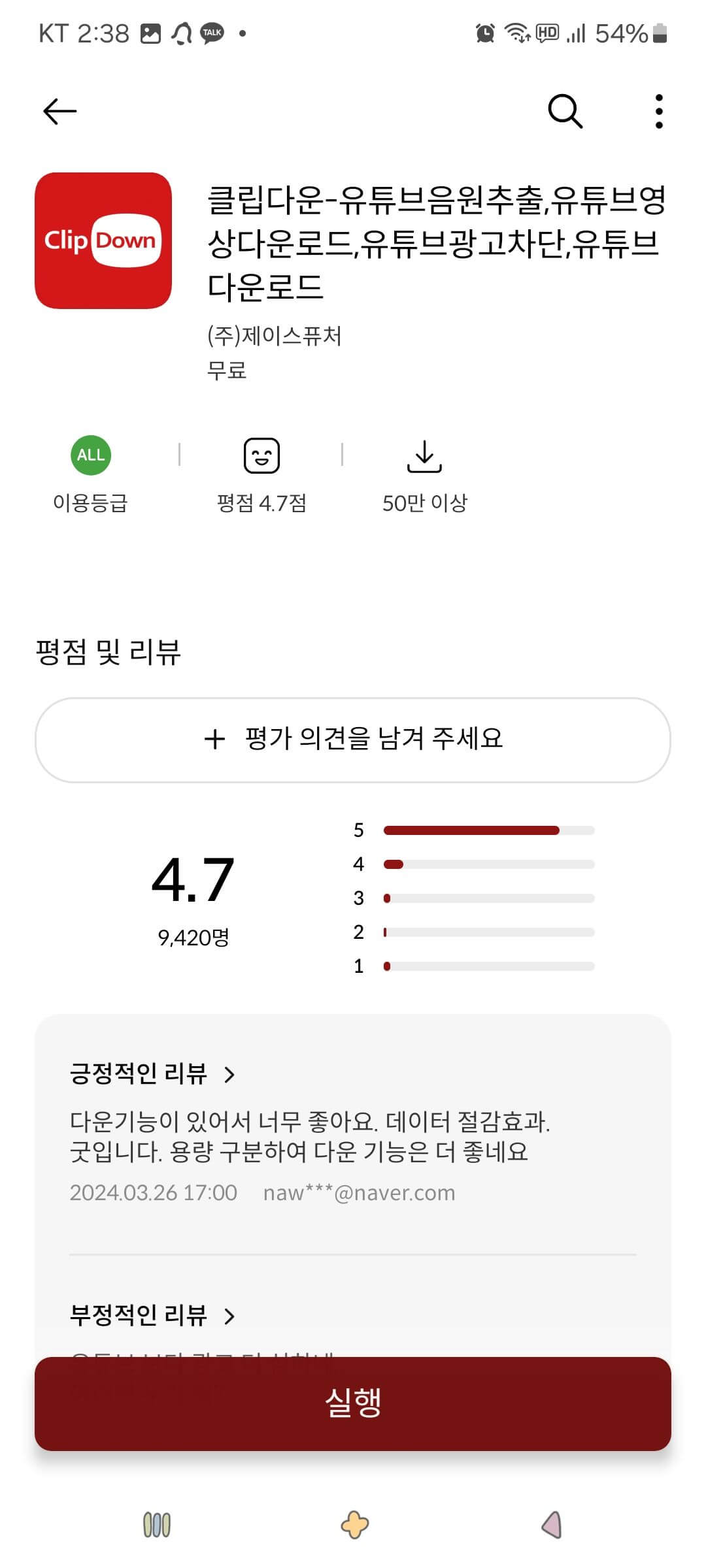 2. 클립다운 '설치' 버튼을 누른 후 '실행' 버튼을 누릅니다. 실행이 될 때까지 기다립니다.