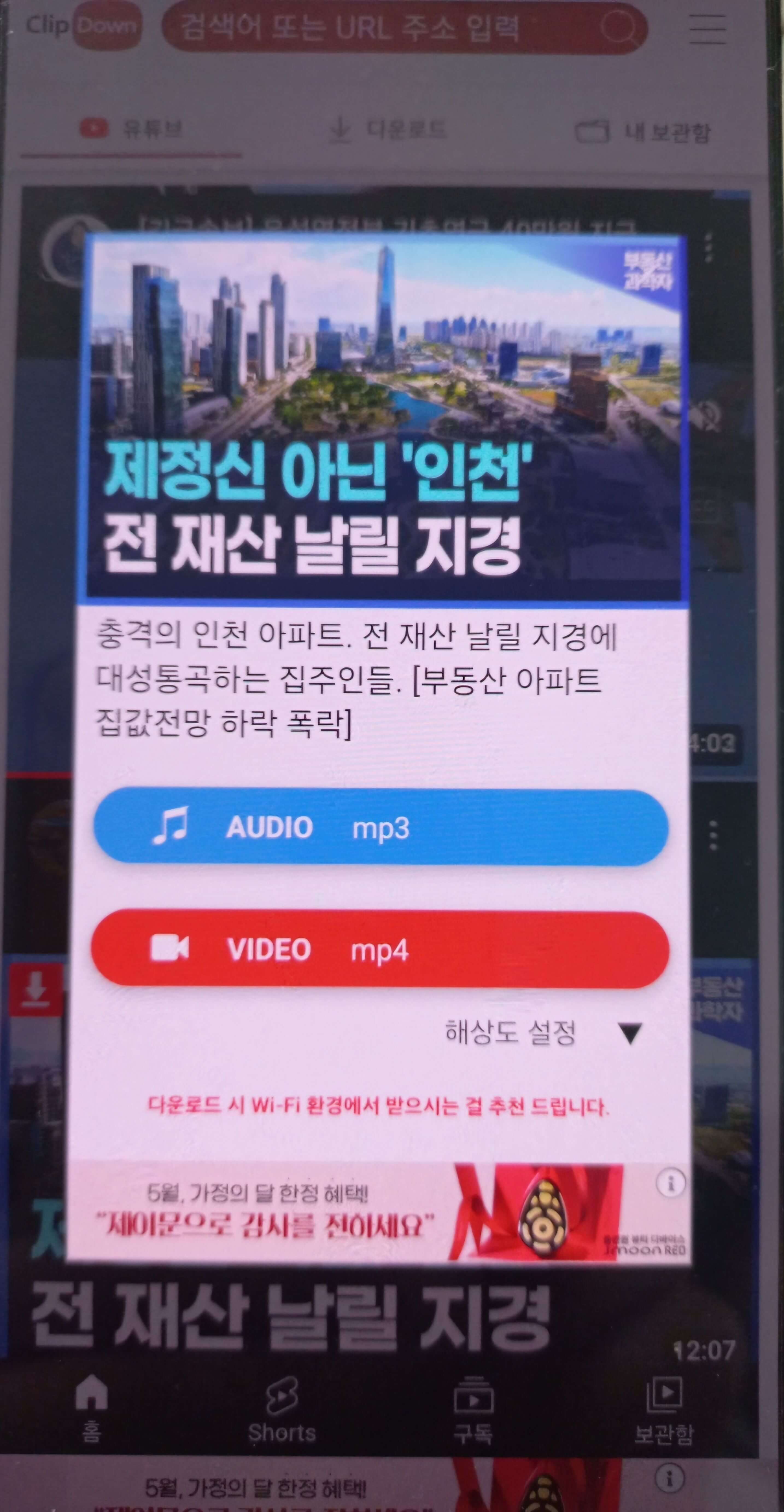 클립다운 모바일 사용법은 간단합니다. 휴대폰으로 유튜브 영상 시청 중에 다운로드하고 싶으면 터치 한 번으로 바로 다운로드할 수 있습니다.