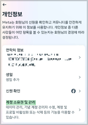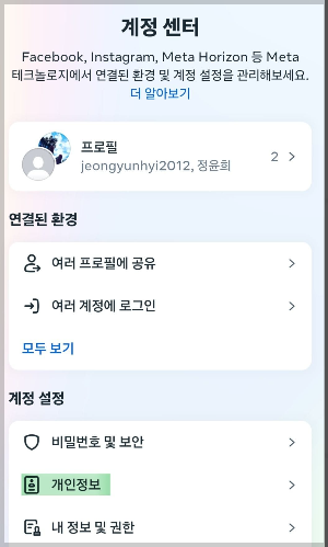 3. 계정 센터를 선택한 다음 개인정보를 선택합니다.
