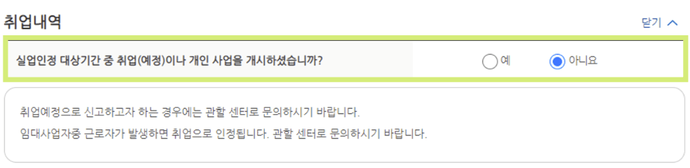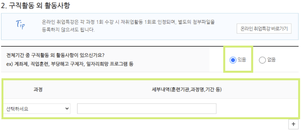 5. 구직활동이 있을 경우 체크하고 구직활동 내역을 작성합니다.