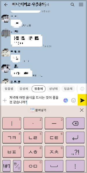 카톡 AI 기능 설정이 되어 있으면 채팅방에서 바로 사용할 수 있습니다. 지금부터 카톡 AI 말투 변경하는 방법에 대해 알아보겠습니다.