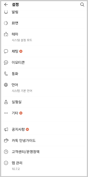 1. 카톡 설정에서 '실험실'을 선택합니다.