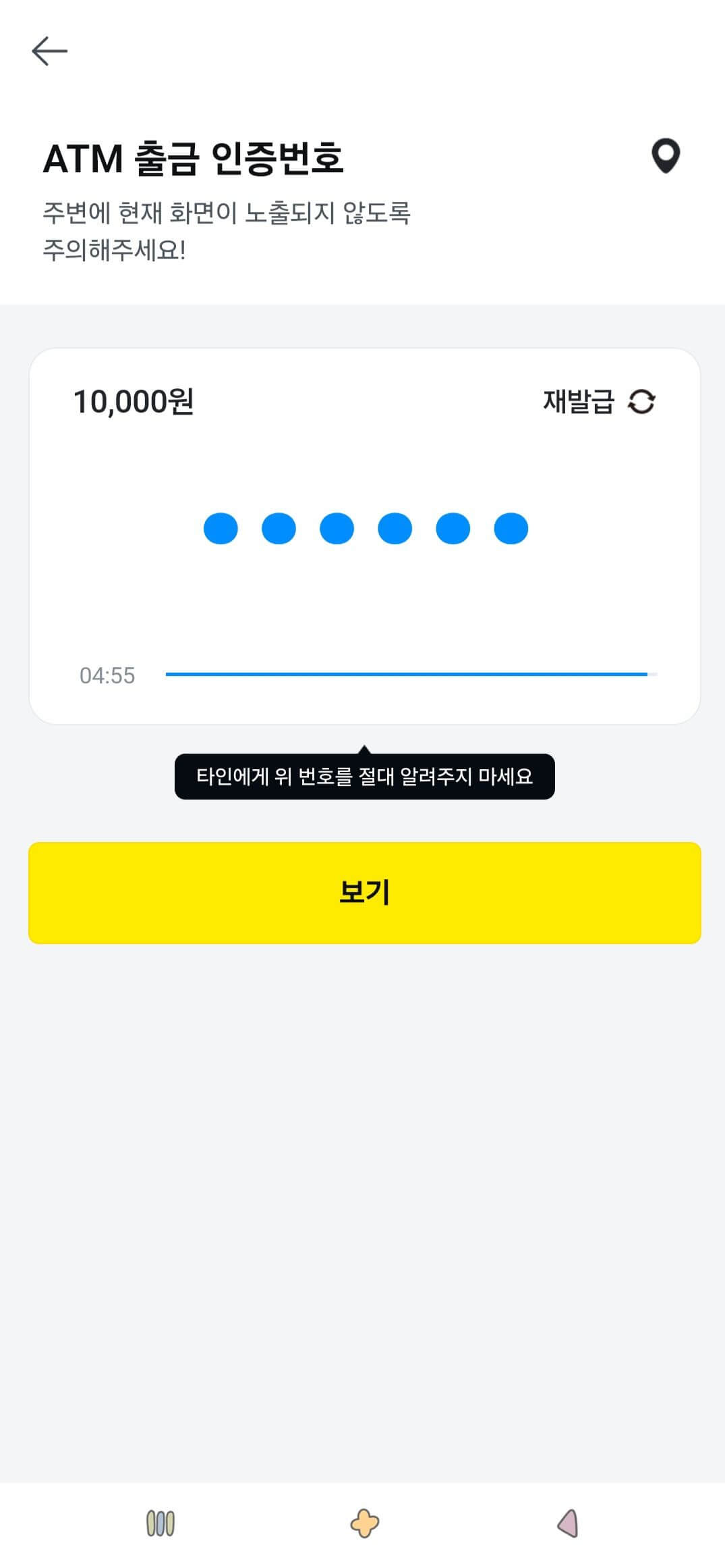 4. ATM 출금 인증번호가 발급됩니다. [보기] 버튼을 눌러 인증번호를 확인합니다.