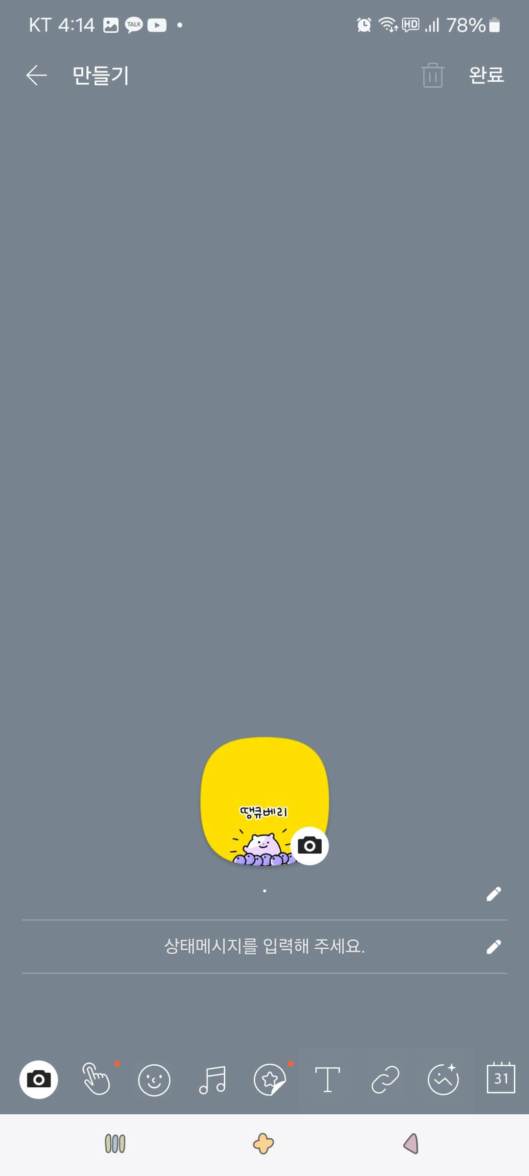 2. 멀티프로필 설정 화면에서 원하는 사진이나 커스텀 프로필을 이용하여 프로필을 꾸민 후 '완료' 버튼을 누릅니다.