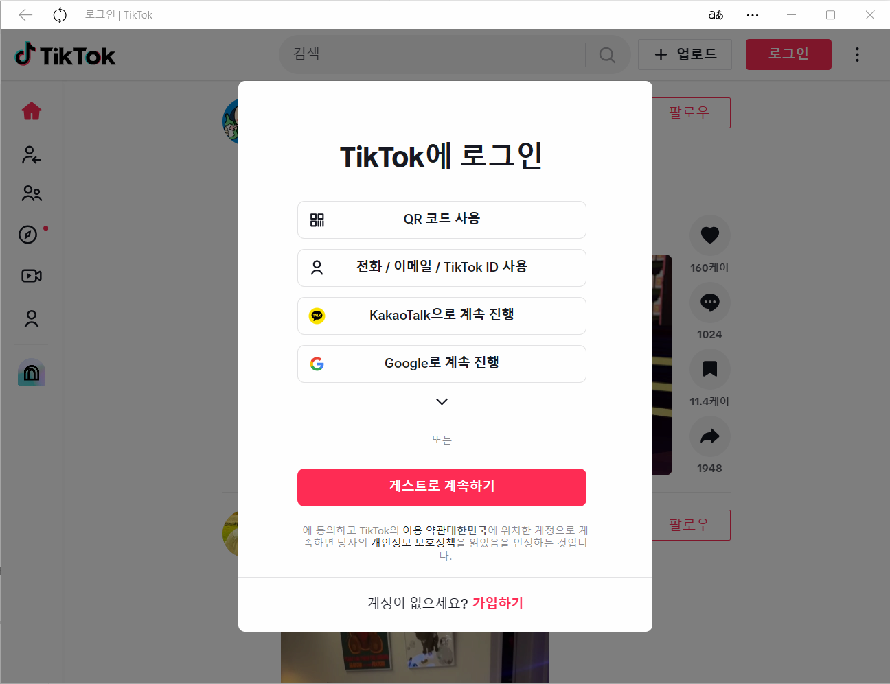 지금까지 틱톡 PC버전 다운로드를 완료하셨으면 틱톡 계정을 만들기 위해 가입을 해야 합니다. 틱톡 가입하는 방법에 대해 알아보겠습니다.