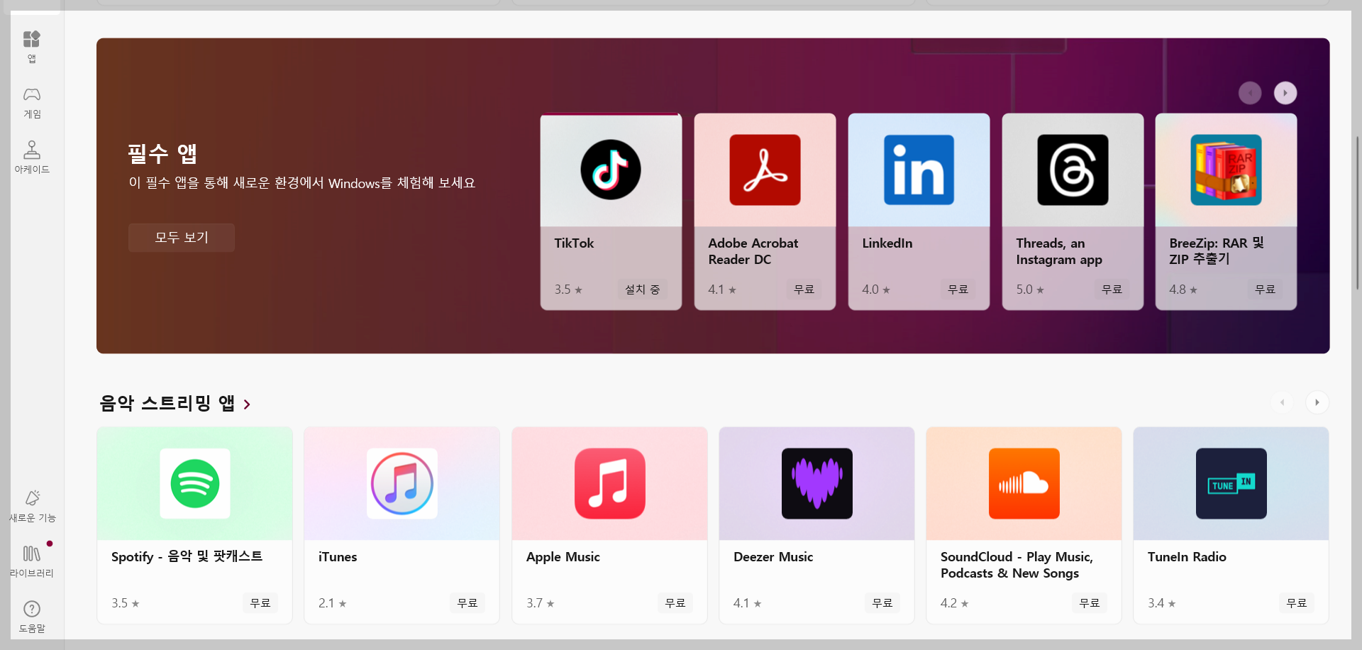 4. 마이크로소프트 페이지에서 오른쪽 상단 [스토어 앱 열기] 버튼을 선택하면 마이크로소프트 스토어 창이 열립니다.