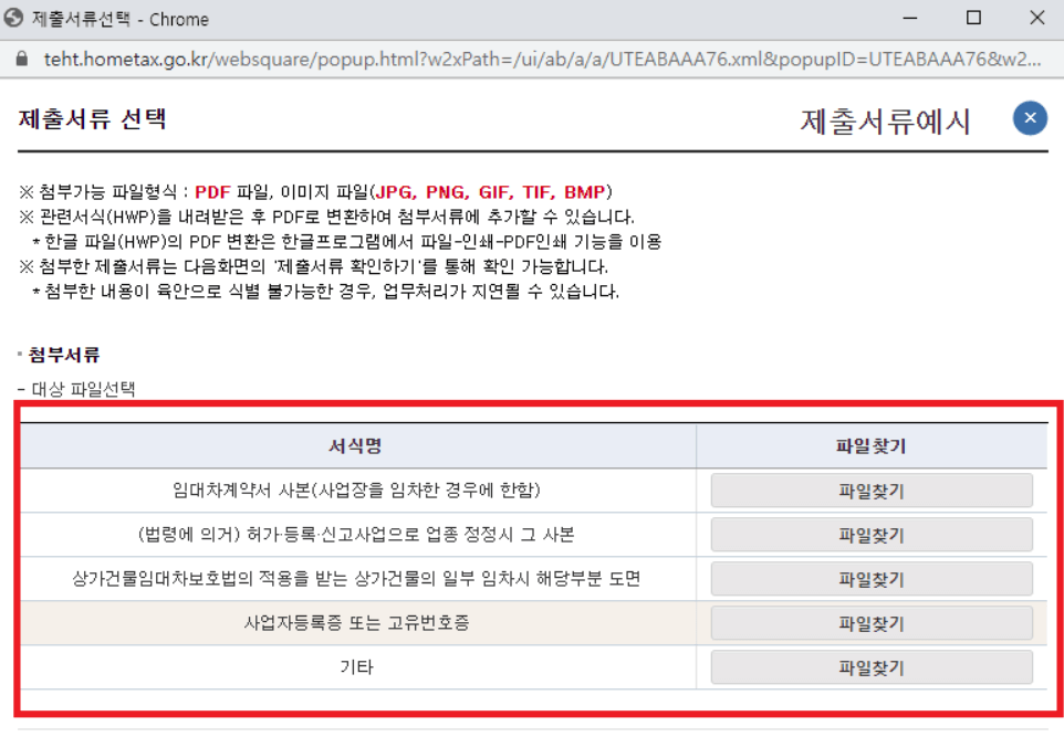- 변경사항을 모두 작성하셨으면 제출서류를 업로드합니다.