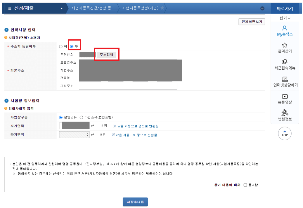 사업자등록증 주소가 바뀌는 사업주는 5분 정도면 누구나 쉽게 홈택스 홈페이지에서 주소변경 신청 할 수 있으니 아래에서 신청하세요.