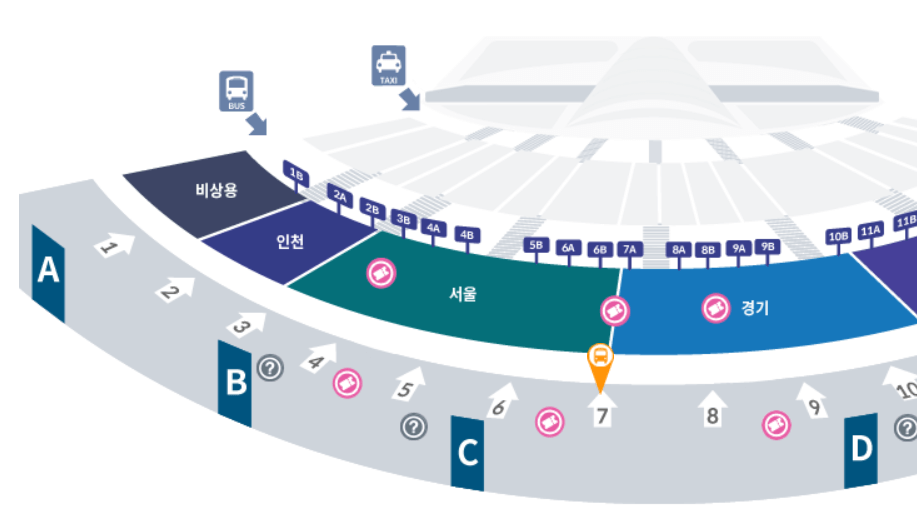 ◾ 인천공항 제1터미널: 1층 7번 정류장