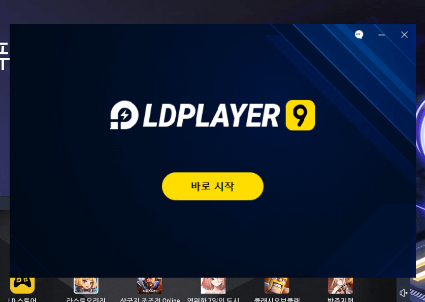 5. ld플레이어 다운로드 및 설치가 완료되면 '바로 시작' 버튼을 누릅니다.